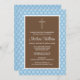 Blue Brown Polka Dot Cross Boy Taufe Christening Einladung
