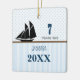 Blue & Brown Segelboot Dot Stripes Foto Ornament