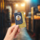 Blue Brown Teacher Name Badge with QR and Photo Ausweis