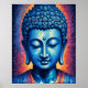 Blue Buddha Modernes Abstrakt Pixel Art Poster
