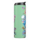 Budgie Budgerigar Rose Watercolor Grün Blumenthermaltumbler, mit einem vollständig anpassbaren Namen. Entworfen aus meiner ursprünglichen Aquarellkunst.