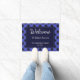 Eine stilvolle und auffällige Türe mit einem karierten, blauen Büffel. Das Büffel-Karo bildet eine reizvolle Umgebung zum dunkelblauen Hauptteil mit weißem Text. Die Formulierung beginnt mit "Willkommen" an der Spitze der Schrift Typografie. Unten kann die Matte mit Ihrer Adresse, Ihren Namen und dem Datum personalisiert werden, das in diesem Wohnsitz "festgelegt" ist. Ein ideales Hauswärmeschenk und ein charmanter Empfang für Ihre Gäste.