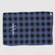 Blauer Büffel Karo bedruckte Golfhandtuch mit Ihrem ersten in blassblau und Nachname in weiß.