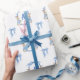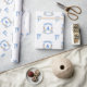 Blue Bunny Rabbit Gingham Monogram Wappen Geschenkpapier