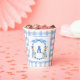 Blue Bunny Rabbit Gingham Monogram Wappen Pappbecher