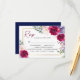 UAWG im Stil mit unserem eleganten "Navy Blue Burgundy & Blush Floral Gold Frame UAWG". Diese exquisite Karte zeichnet sich durch ein atemberaubendes Blumendesign in bordeauxrot, marineblau und rot aus und ergänzt perfekt Ihr Hochzeitssmotiv. Mit seinem luxuriösen goldenen Rahmen und den detaillierten Aquarellblüten-Blume wird diese RSVP-Karte Ihre Gäste beeindrucken!
