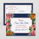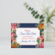 Blue Burgundy Floral Save the Date Postkarte