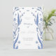 Wedding Invitation with a frame of elegant branches with blue buttercup and leaves. Hand drawn abstract blue delicate flowers leaves on white background. Romantic floral nature background. Abstract nature branches. Spring or summer floral design. Botanical plot. Soft blue botany Wedding Invitation. Blue Buttercup Collection.