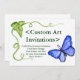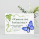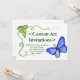 Malerei mit einem blauen Schmetterling, dessen Flügel sich im Flug verbreiten. Schmetterling wird durch eine grüne Weinrebe mit einem Blatt betont. Grüne Schmetterlingskunst in Aquarellfarbe. Machen Sie individuell gestaltete, grüne Schmetterlingskarten mit eigenen Texten und Bildern für großartige Schmetterlingsthema-Partys! Dieses Bug-Einladungs-Design ergänzt andere Insektendesigns von DonnaBellas für eine Gartenveranstaltung wie Kinderdusche, Polterabend, Geburtstagsfeier oder Hochzeitsfeier!