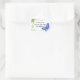 Malerei mit einem blauen Schmetterling, dessen Flügel sich im Flug ausbreiten, und einer grünen Weinrebe mit einem Blatt. Blaue Schmetterlingskunst in Aquarellfarben gerendert. Machen Sie individuelle blaue Schmetterlingsaufkleber mit Ihrem eigenen Text und Bildern für großartige Schmetterlingsgeschenke!