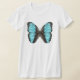 Blauer Schmetterling Shirt mit einem digitalen zeichn, der die Schönheit und Eleganz eines der atemberaubendsten Wesen der Natur zeigt - den Blauen Morpho Schmetterling. Das Kunstwerk erfasst die Essenz der blauen Flügel des Schmetterlings. Der Hintergrund des Gemäldes ist schlicht behalten, mit einer abgestuften, weißen Farbe, die dem strahlenden Blau der Flügel des Schmetterlings gegenübersteht. Es ist eine perfekte Ergänzung zu jeder Entomologie- und Insektenkunst-Liebeskollektion und eine Hommage an die beeindruckende Schönheit der Natur.