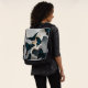 Ein Seitenprofil einer Frau mit weißem Haar, die eine Maske mit blauer Schmetterlingsmaske trägt, mit blauen Schmetterlingen überall