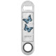 Pop offene Flaschenplatten mit diesem einzigartigen Blue Butterfly Floral Personalisiert Bottle Opener. Das Bottle Opener Design besticht durch ein Paar lebendiger Schmetterlinge, die sich auf einer weißen, blumengeschmückten Weinrebe mit hellgrauem Grunge-Hintergrund ruhen. Zusätzliche Geschenkartikel in diesem Design sowie eine Vielzahl von Farben.