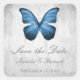 Elegante und einfache Hochzeit Speichern Sie die Date Stickers mit einem Blue Butterfly vor einem grauen Grunge Hintergrund. Dieses Design ist eine einzigartige Wahl für die Ankündigung einer modernen Hochzeit. Einfach an Ihre Hochzeitsdetails anpassen. Klicken Sie auf "Anpassen", um weitere Personalisierungsoptionen zu erhalten.
