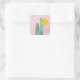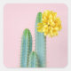 Dieses Trio aus blauen Kakteen sitzt auf einem rosa Hintergrund mit einer gelben Blume.