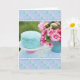 Geburtstagskarte mit einem schönen blauen Kuchen und Gänseblümchen. Ändern Sie die Insider-Nachricht, um sie Ihrem Anlass anzupassen.