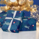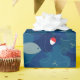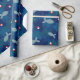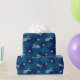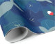 Fun blaues Angelmuster Packpapier. Blaue Fische, Angeln, Haken und Schwimmer. Alles auf einem blauen Hintergrund.