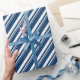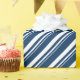 Ein klassisches Bonbons-Streifenpapier mit einem weißen, kantigen Streifen auf marineblau blauem Hintergrund.
