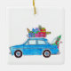 Blue Car mit Weihnachtsgeschenken Wasserfarbe Keramikornament