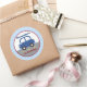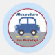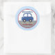Design zum Thema Transport von blauen Autos. Dieser niedliche Rundaufkleber ist mit eigenen 2 Textzeilen versehen.