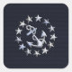 Blue Carbon Style Nautical Chrome Yacht Flag Print Quadratischer Aufkleber