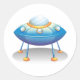 Blue Cartoon UFO Spaceship Fun Sci-Fi Runder Aufkleber