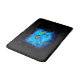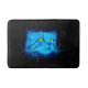Ein fraktalisiertes blaues Katzengesicht mit atemberaubend gelben Augen vor schwarzem Hintergrund.