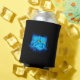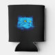 Ein fraktalisiertes blaues Katzengesicht mit atemberaubend gelben Augen vor schwarzem Hintergrund.