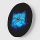 Blue Cat Face Große Wanduhr