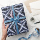 Dunkelblaues Himmelsknotendesign in Fliesen, die so angeordnet sind, dass sie einen dimensionalen Stern wie eine Form bilden, ähnelt einem geknitterten Satin-Stoff aus den Highlights und Schatten