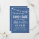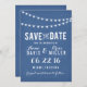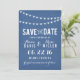 Eine rustikale Hochzeit oder Liebe im Retro-Stil? Passen Sie Ihr eigenes blaues Chalkboard Sommersaitenlicht "Save the Date" an. Personalisieren Sie Ihr "Save the Date", indem Sie den Stil, die Farbe und vieles mehr des Schriftartes ändern, indem Sie auf die Schaltfläche "Anpassen" unter dem Produktbild klicken.