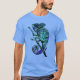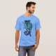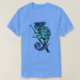 dekorative Kunstwerke eines blauen Chamäleons, der auf einem T - Shirt auf einen Ast klettert.