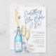 Feiern Sie die zukünftige Braut mit dieser eleganten Brautdusche-Einladung "Etwas Blau vor mir". Dieses Design mit einer festlich blauen Champagnerflasche, glitzernden Flöten und sanften floralen Akzenten verbindet den Charme der Aquarellfarben mit moderner Eleganz. Personalisieren Sie Ihre Daten mit den Namen, Veranstaltungsdetails und Registrierungsinformationen für eine perfekt abgestimmte Touch. Ideal für klassische Brautpartys mit Champagner oder blauen Themen vor Hochzeiten.