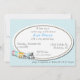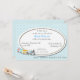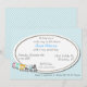 Gemütliche Schachtel-Babydusche Einladung. Grafische Kunstwerke aus Aquamarin und Weiß winzige karierte Muster, als Hintergrund, und ein weißer ovaler Textbereich in der Mitte. Der Niedliche Cartoon-Zug, in der unteren links Ecke, schließt diese Babydusche-Einladung ab, damit die Mutter sich wohl fühlt. Passen Sie den Text an den Anzug Ihres Party an.