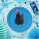 Auf schwammartigem Blau fotografiert, ist eine schwarze Henne, die geht