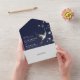 Diese marineblaue Chinoiserie Blumengarten Hochzeit alles-in-one Einladung kann mit Ihren Informationen in der modernen Typografie personalisiert werden. Entwickelt von Thisisnotme©