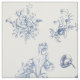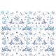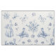 Vintages blaues Muster einer französischen pastoralen Toilszene mit einer Dame, die einen Korb hält, einem Bauernjungen und einer Gruppe von Schafen mit Blumenakzenten.