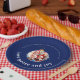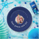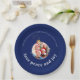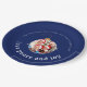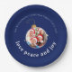 Make your family Christmas gathering memorable with this festive paper plate featuring your photo in a playful ornament frame. The classic "Love, Peace and Joy" message in elegant typography on classic midnight blue background brings heartfelt warmth to your holiday table. Fully customizable with your family photo and name. Perfect for creating joyful memories at Christmas parties, family dinners, and holiday celebrations.
