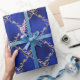Blue Christmas Holiday Gold Glitzer Damask Geschen Geschenkpapier