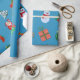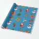 Blaue Weihnachtsbilder verpacken Papier mit dem Weihnachtsmann, Geschenke, Schlitten, Rentier, Weihnachtsbaum, Strumpf, Bauble und Schneemann. Dieses Papier gibt jedem Geschenk Weihnachtsgeist mit Stil. Sie können den blauen Hintergrund dieser Weihnachtsgeschenkverpackung in jede andere Farbe ändern, wenn Sie möchten.