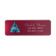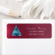 Blauer Weihnachtsbaum auf einem roten Hintergrund. Ein elegantes und raffiniertes Design. Passen Sie Ihre Namen und Adressdaten an.