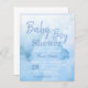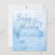 Eine elegante und niedliche preisgünstige Baby-Baby-Dusche Einladung. Auf einem blauen Gradienten fließende Wolke Hintergrund, der blaue Typografie-Text liest Baby Boy Shower. Personalisieren Sie Ihre Veranstaltung und Ihre Kontaktdaten.