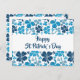 Blue Clover Kleeblatt Pattern St. Patrick`s Day Postcard. St Patrick's Tag modernes Design mit handgezeichnet blauen Kleeblatt, Kleeblatt Muster.