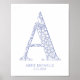 Dieser bezaubernde blaue Mandala-Brief "A" ist ein perfekter Ausdruck für das Zimmer oder Kinderzimmer Ihrer Tochter. Personalisieren Sie es einfach mit ihrem Namen und Geburtstag. Klicken Sie zum Anpassen auf "Dieses Design personalisieren", geben Sie Ihre Informationen ein, und Zazzle kümmert sich um die Erholung. Weitere Farben sind ebenfalls verfügbar.