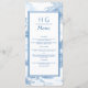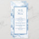 Blue Coastal Toile Hochzeitsmenü Menükarte