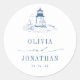 Blue Coastal Toile Lighthouse Wedding Runder Aufkleber