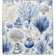 Shower Curtain - Elegant blue and white coastal toile pattern with detailed coral, seashells, and starfish illustrations. Ideal for beach lovers, coastal decor fans, and those who enjoy classic ocean-inspired designs.