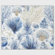Wrapping Paper - Elegant blue and white coastal toile pattern with detailed coral, seashells, and starfish illustrations. Ideal for beach lovers, coastal decor fans, and those who enjoy classic ocean-inspired designs.