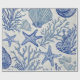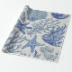 Wrapping Paper - Elegant blue and white coastal toile pattern with detailed coral, seashells, and starfish illustrations. Ideal for beach lovers, coastal decor fans, and those who enjoy classic ocean-inspired designs.