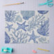 Tissue Paper - Elegant blue and white coastal toile pattern with detailed coral, seashells, and starfish illustrations. Ideal for beach lovers, coastal decor fans, and those who enjoy classic ocean-inspired designs.